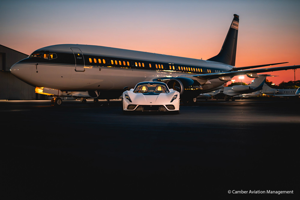 If I had to choose the best feedback, it would be the lead captain of one of Camber’s BBJ2 clients, who has my image of the jet with a Hennesey hypercar positioned in front with the gull-wing doors open hanging in his office.